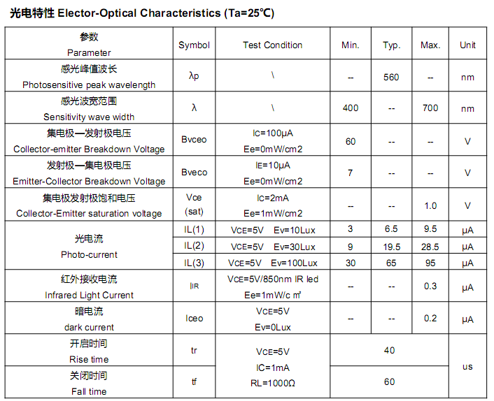 光敏传感器HLPT550B5H5W