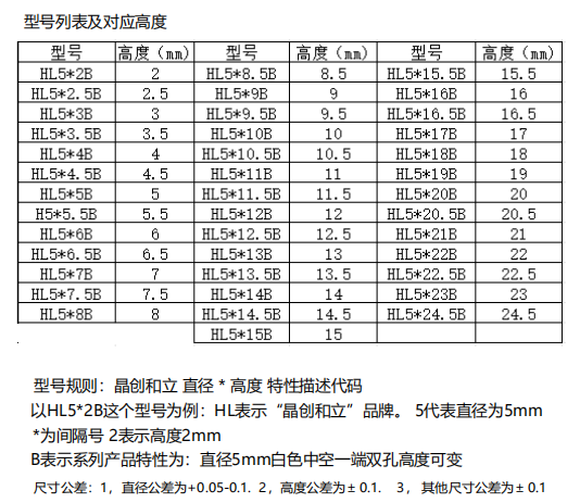 规格:直径4/5mm,高度1.5-24mm