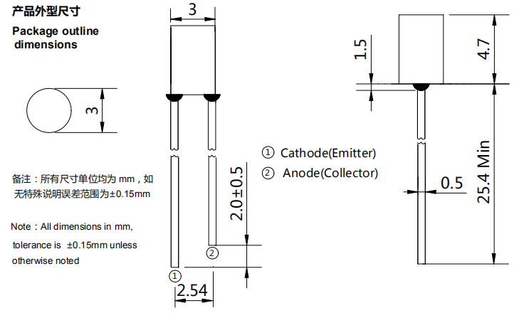 直径3mm光敏传感器