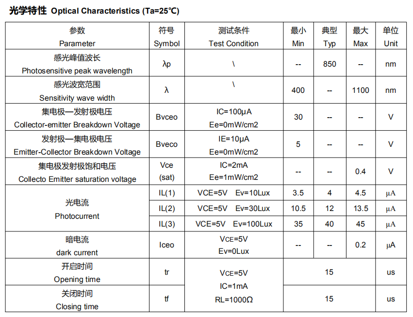 光敏传感器HLPTSMD023