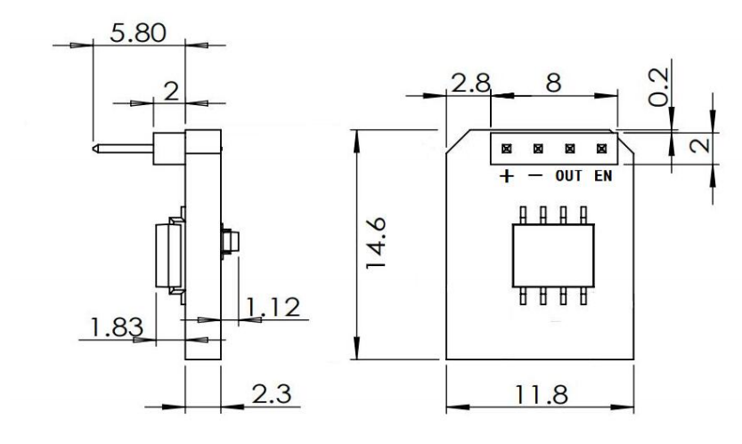 The HL-D11 has dimensions of 14X12mm, a power supply voltage of 3.1-12VDC, and an operating current of 2-3mA. When someone enters the detection range of this product, the microwave radar sensing module's output Vout will output a TTL high level. After a delay period (operating delay), the output will return to a TTL low level. After the sensing module is activated, if there is human activity during the delay period, the module's output Vout will continue to output a TTL high level until the person leaves and a delay period (operating delay) has passed, after which the output will return to a low level.
